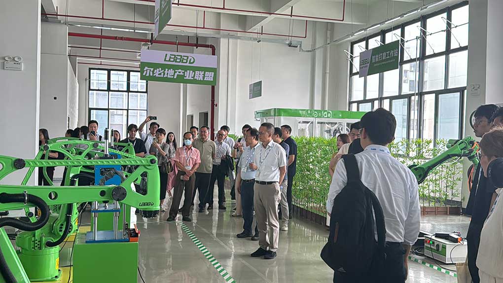 在商務(wù)局與機器人協(xié)會相關(guān)領(lǐng)導陪同下,考察團首先抵達爾必地總部大樓,并乘電梯至8樓的智能產(chǎn)教裝備展示中心?,F(xiàn)場通過圖文展板、實物設(shè)備展示和專業(yè)講解,全面了解了爾必地在工業(yè)機器人產(chǎn)教融合、一站式產(chǎn)業(yè)賦能、應(yīng)用解決方案等方面的成果。
